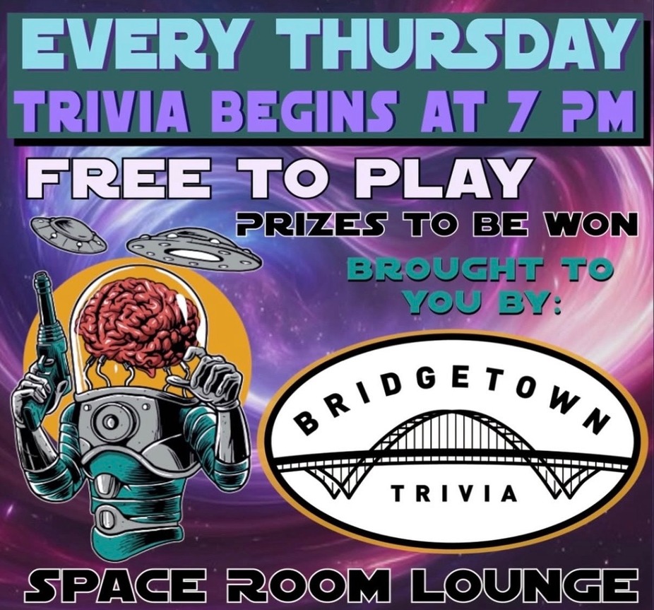join us every Thursday on the patio for Bridgetown Trivia • Free • 21+ • 7 PM •