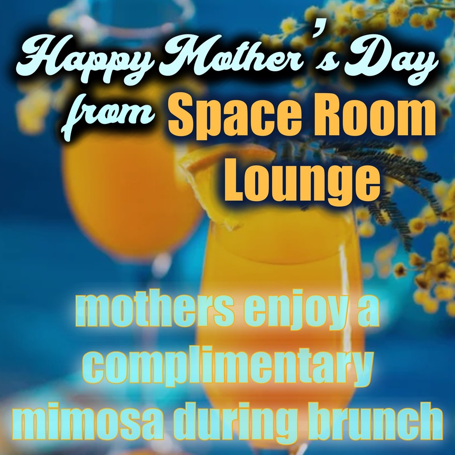 join us for brunch this Mother's Day • Sunday, May 10th from 10 AM - 3 PM • mothers enjoy a complimentary mimosa, courtesy of Space Room Lounge