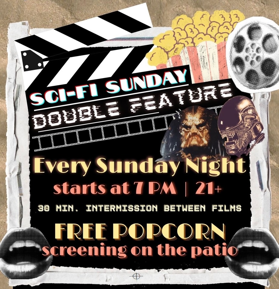 enjoy a new double feature of sci-fi films on our space-themed patio every Sunday night • 7 PM • FREE popcorn • 21+ • 05/03: DUNE & DUNE 2 • 05/10: Pan's Labyrinth & Cloverfield Paradox • 05/17: Snowpiercer & The Thing